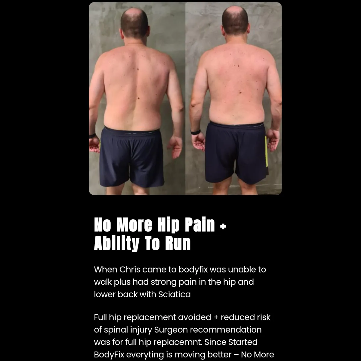 "I was in constant pain and burnout. Nothing worked until I found BodyFix. Their holistic approach rebuilt me from the inside out. I’ve never felt this strong or confident."